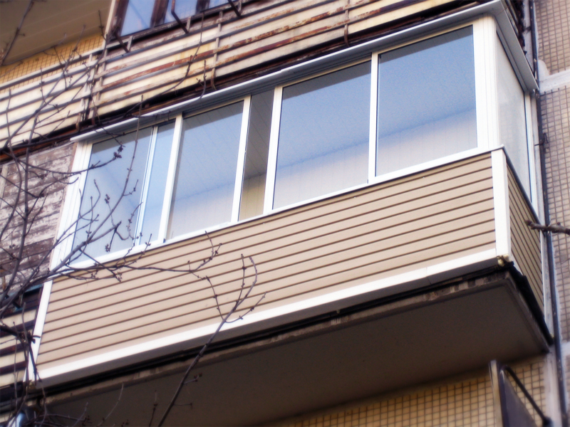 Мы выполняем внешнюю отделку балконов виниловым сайдингом. Виниловый сайдинг – это твердое покрытие из поливинилхлорида (ПВХ) в виде панелей специально предназначенное для наружной отделки. Отдельные панели легко соединяются между собой внахлест с помощью замков-защелок и образуют таким образом секции любых размеров. Монтируется сайдинг с помощью саморезов или гвоздей, которые затем искусно маскируются.