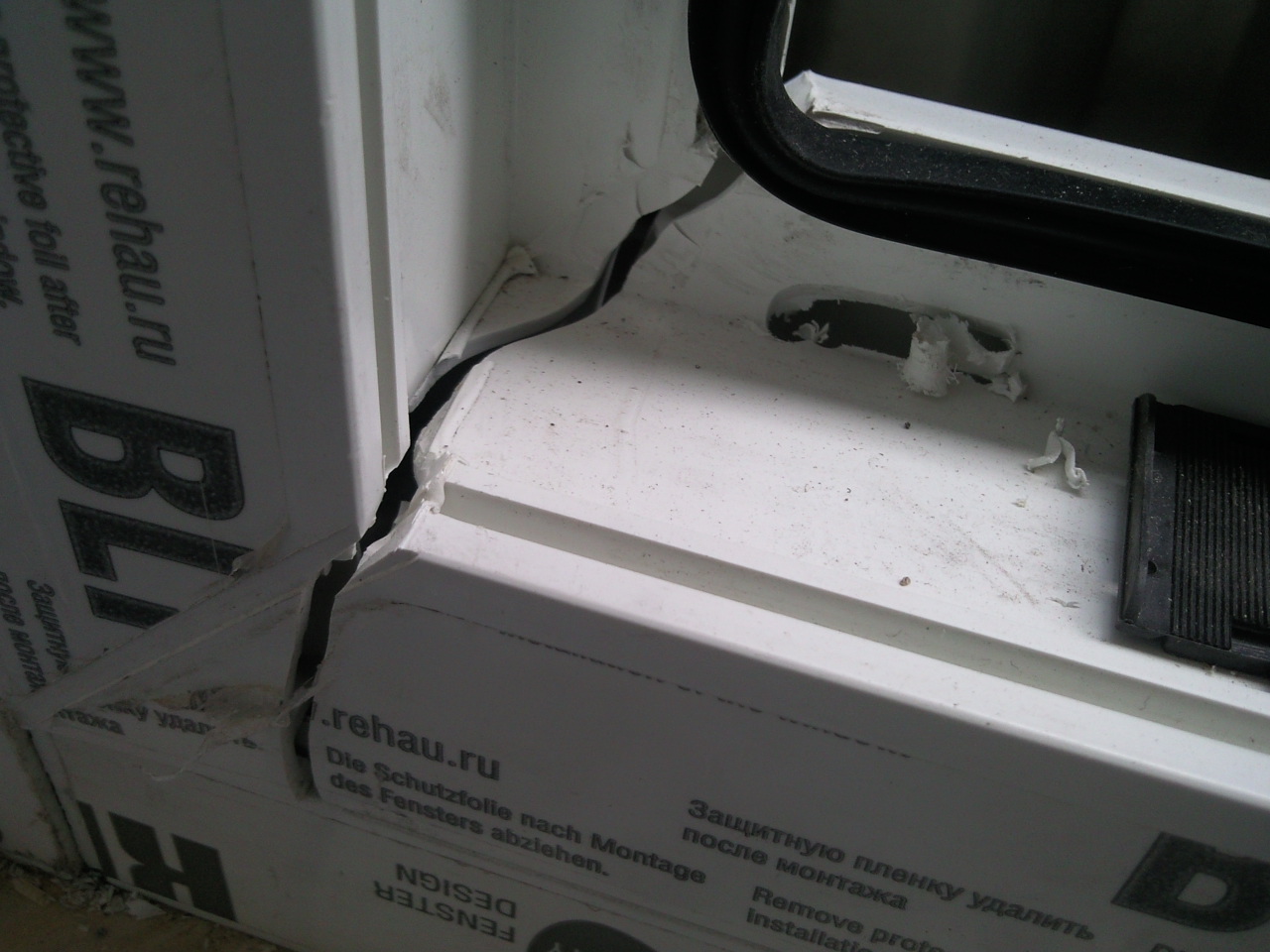 У основания лопнула рама (см. фото). На заводе сказали, что только монтажники могут заявить рекламацию. Монтажник позвонил и сказал, что заклеим жидким пластиком и все будет оч. хорошо, мол, не переживайте. Можно ли верить монтажникам, раз они лица заинтересованные? Тем более, что монтаж заканчивался уже в темное время суток.