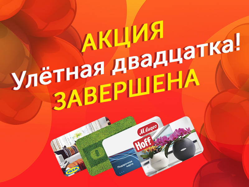 30 июня подошел к завершению первый период акции «Улетная двадцатка»! Следите за подведением итогов акции! Победители будут определены 8.07.2016! Процесс выбора будет снят на видео и размещен на...